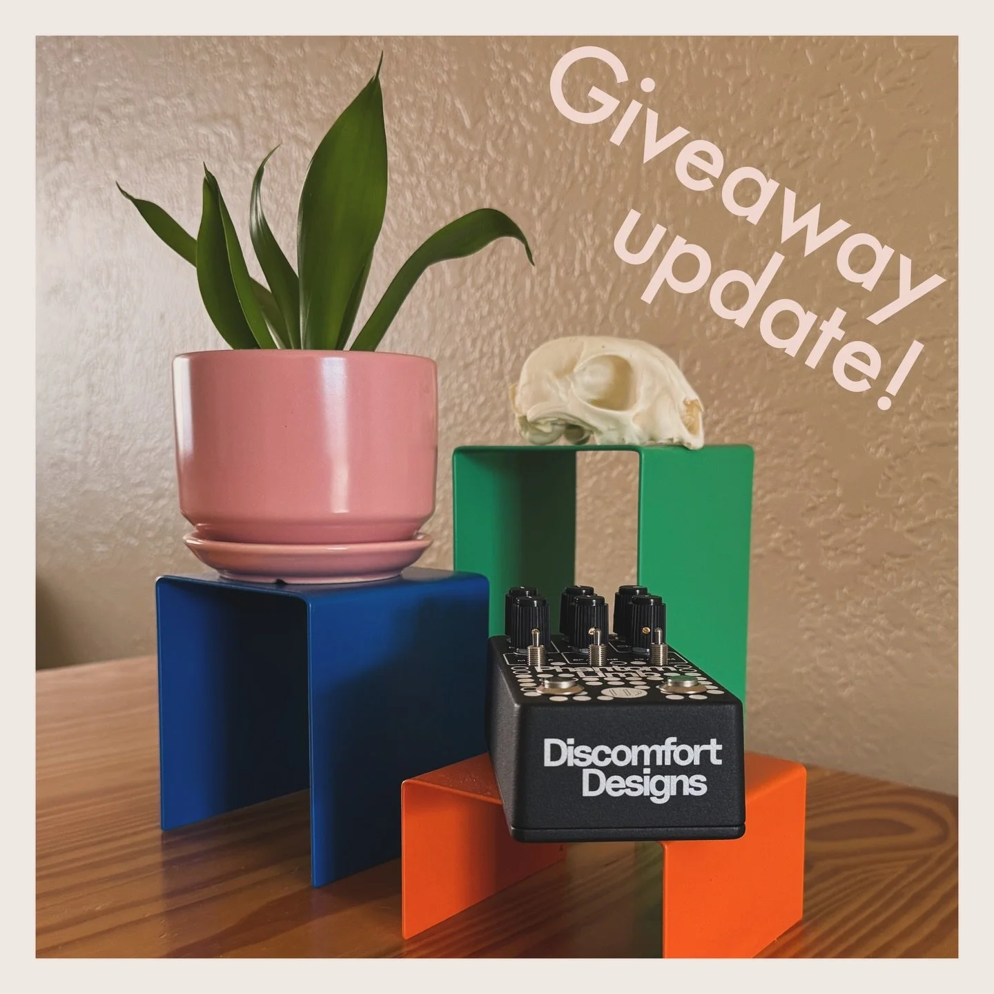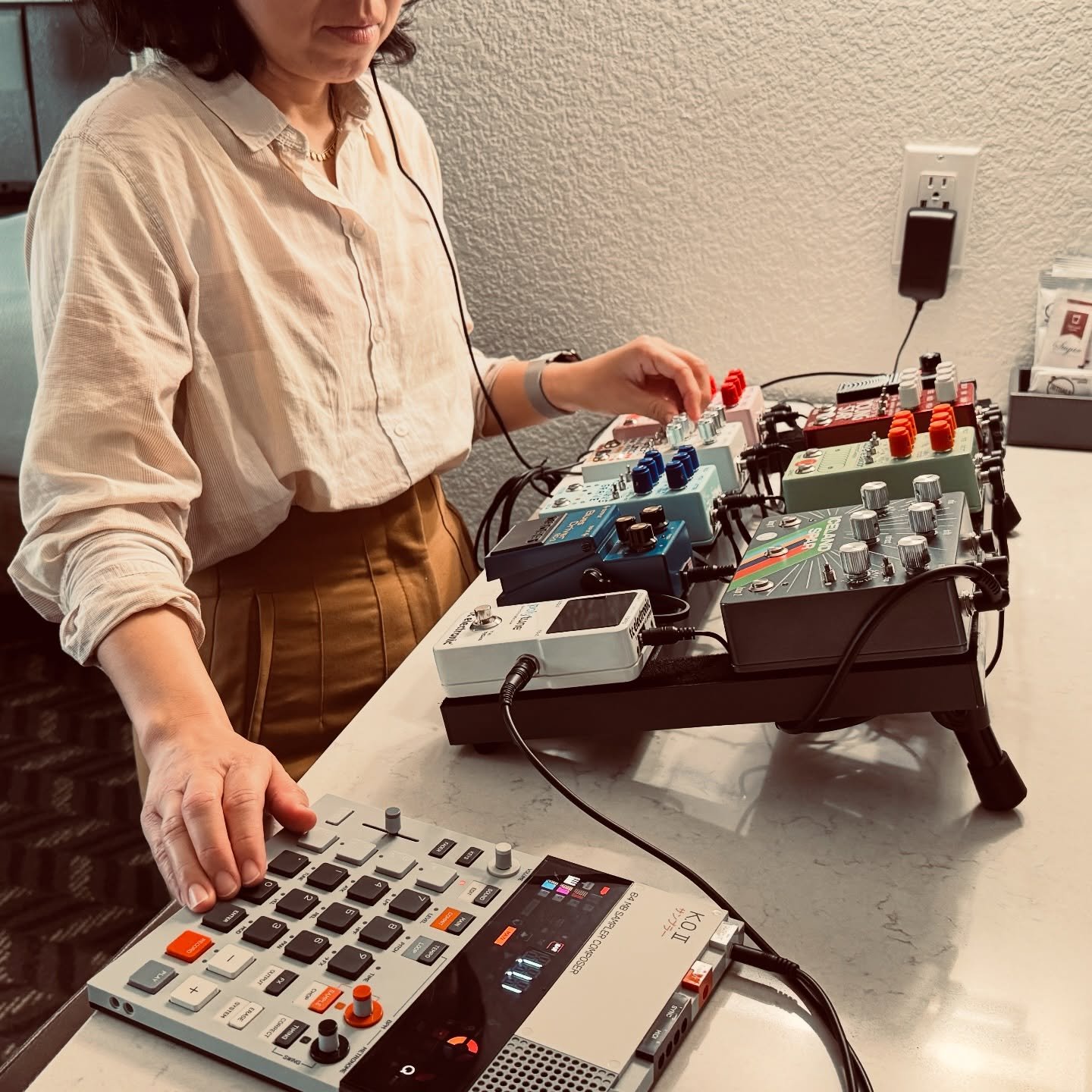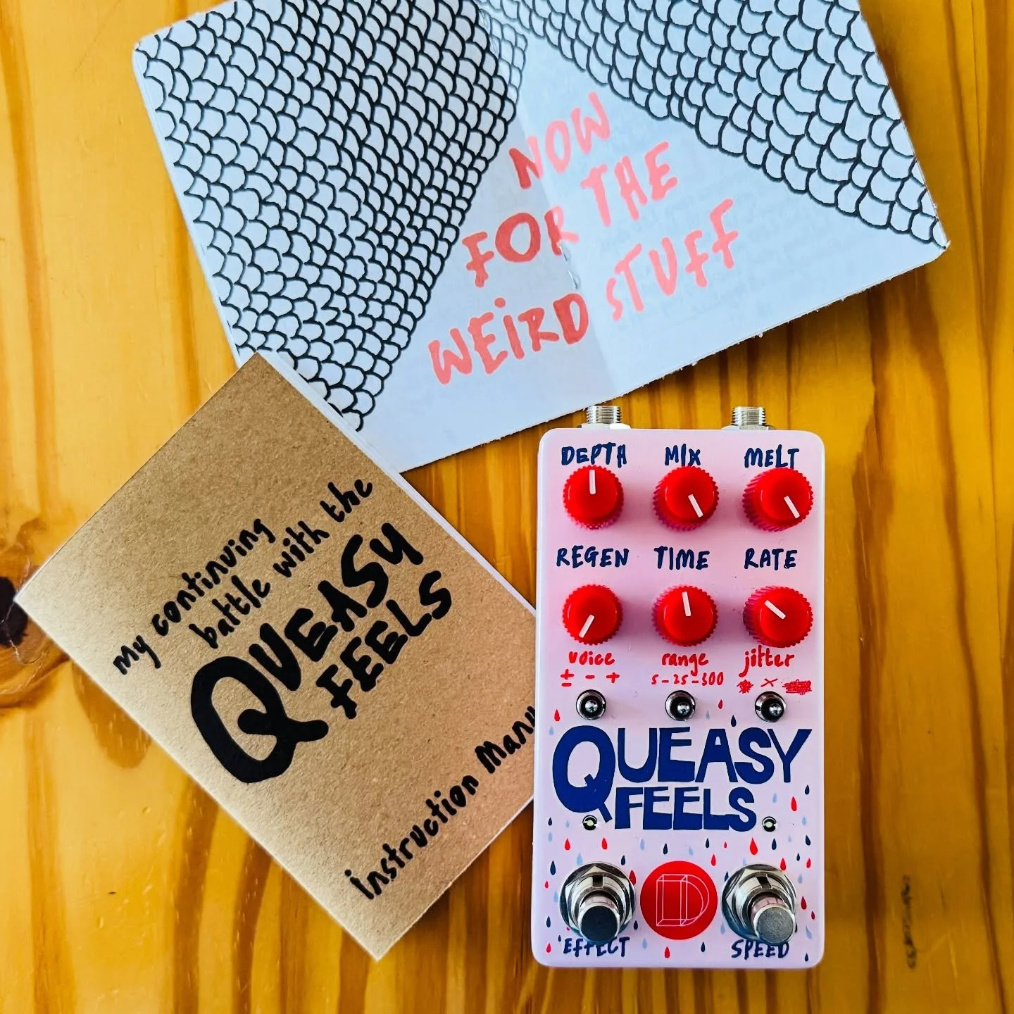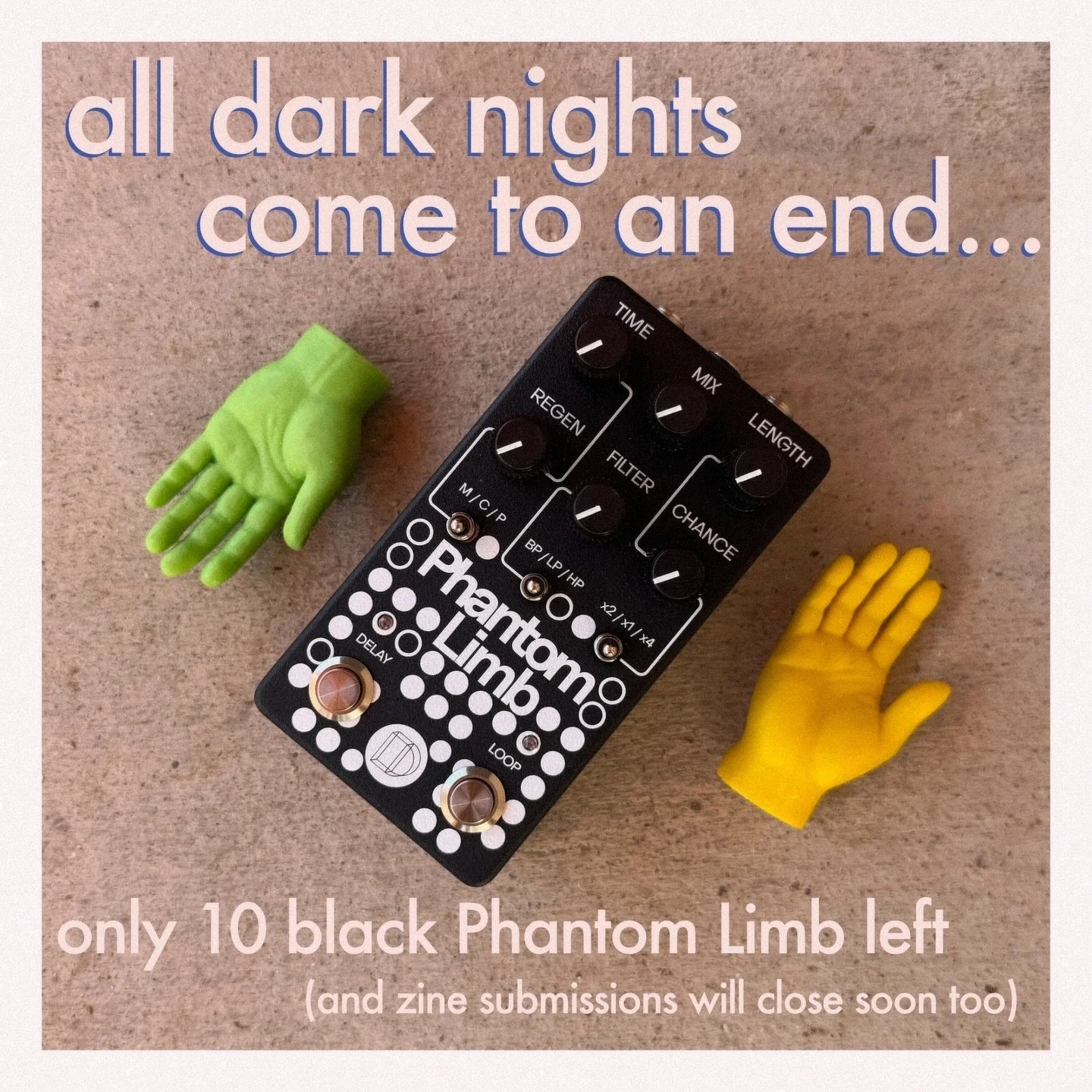 It’s a randomly triggered one shot looper, er actually, nine of those. One lockable freezable loop buffer that can be mangled to your satisfaction with a clock modifier toggle. A multimode filter with a kiss of resonance. And a three-faced digital delay to top it all off. It’s a friendly zone-out/drone-out machine. And we’re very proud of it, Cherith and I.